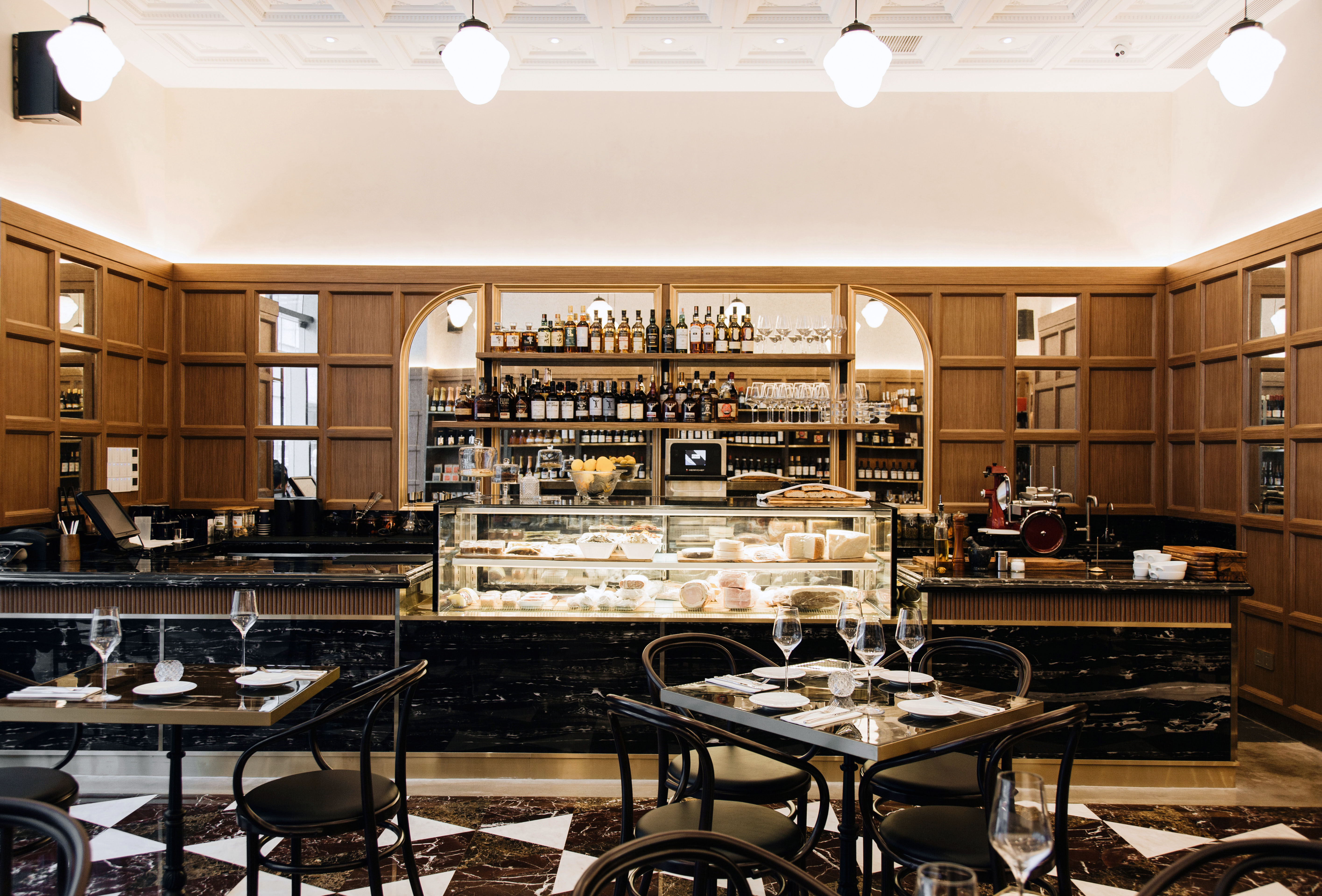When thinking about the design direction of the Curator Shop, we looked to the past, particularly at works of art, that gave us clues about how public spaces shaped encounters. The look and feel of traditional gathering places were playfully captured in the art of Jean Beraud in particular. The interiors of these paintings were successful in framing the moment, without dominating the scene. Colour palates are muted, warm and earth tones take precedent. The space of activity is articulated with pared-back ornament. Pendant lighting highlights the space in a uniform manner, and walls are adorned with feature mirrors that expand the field of view. Differing floor finishes denote zones for seating and zones for perusing. The stories told through materials was the starting point in our conversation with the client about how the character of the space might be fleshed out.